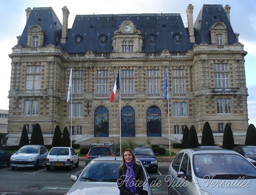 Olá queridos e queridas, como vocês estão? Como prometido, aqui estou eu para relatar a continuação dos meus passeios por Paris. Como eu já contei ontem, decidimos ir para o Palácio de Versailles logo cedinho no domingo por dois motivos principais: o primeiro era para evitar as filas e o segundo porque o palácio não abre às segundas-feiras, então era domingo ou nunca, hehe. Então, pegamos o metrô e o RER C (tivemos que descer uma estação antes e caminhar um pouco mais devido a perturbações relativas à greve, mas nada grave). Nessa caminhada, passamos em frente à prefeitura de Versailles.
