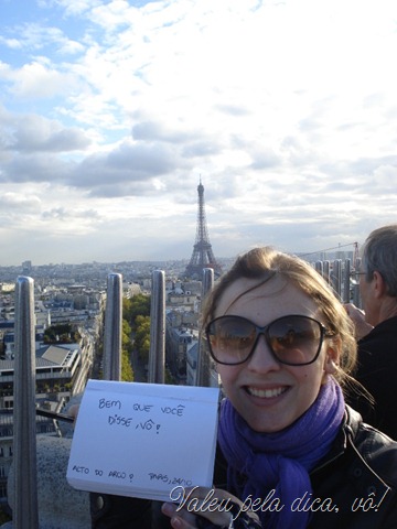 Voltando de RER, descemos na estação Champ de Mars - Tour Eiffel e eu a vi de pertinho pela primeira vez - não subimos até o alto nesse dia porque essa que vos escreve ficou de frescura porque tinha muita fila (vale notar, no dia seguinte, quando subimos, a fila estava mais ou menos o dobro do tamanho #fail), mas passeamos pela região: Palais de Chaillot, Esplanade des Invalides, Petit e Grand Palais e chegamos finalmente (e novamente) ao Arc de Triomphe onde, dessa vez, resolvemos encarar os inúmeros degraus e subir até o alto - mais uma vez, dica do meu avô, preciosíssima, a vista lá de cima é linda…mas, vamos às fotos?