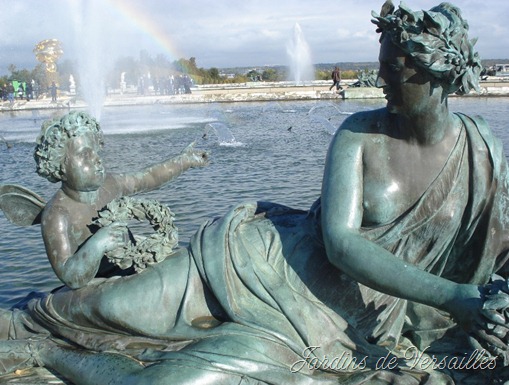 Depois de passear por todo o palácio, saímos para os jardins. Ai, o que são os jardins de Versailles…é uma coisa meio difícil de descrever, é lindo. E para quem tiver sorte ainda pega o espetáculo das águas musicais. Vale notar que em determinados meses do ano são realizados também espetáculos noturnos, com shows de luzes e pirotecnia. Com certeza quero ver um desses shows na minha próxima visita a Paris.